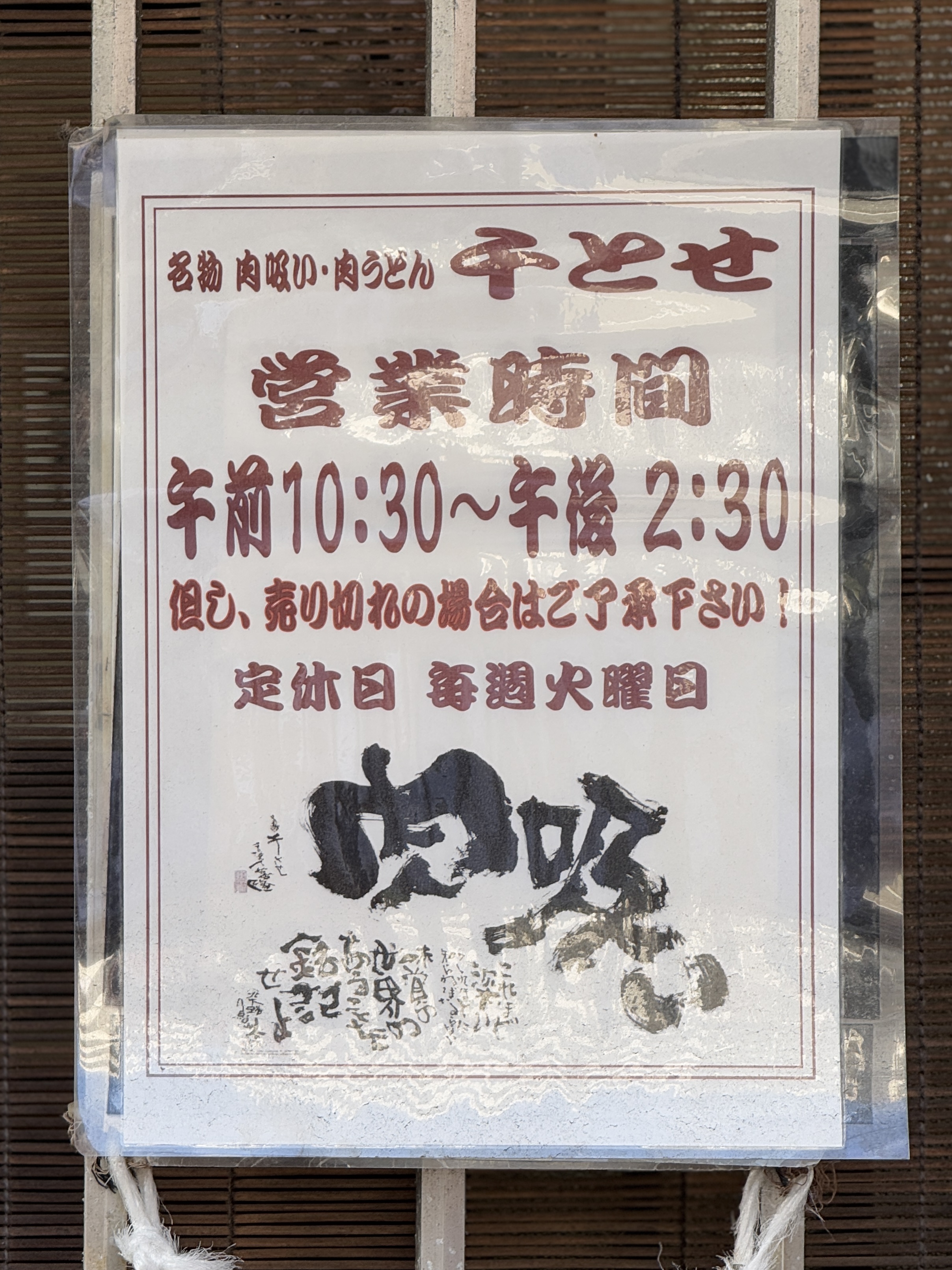숙취 때문에 치토세에 들러 '니쿠우동에서 우동면을 빼고' 주문한 것이 계기가 되어 탄생한 메뉴라고 합니다.