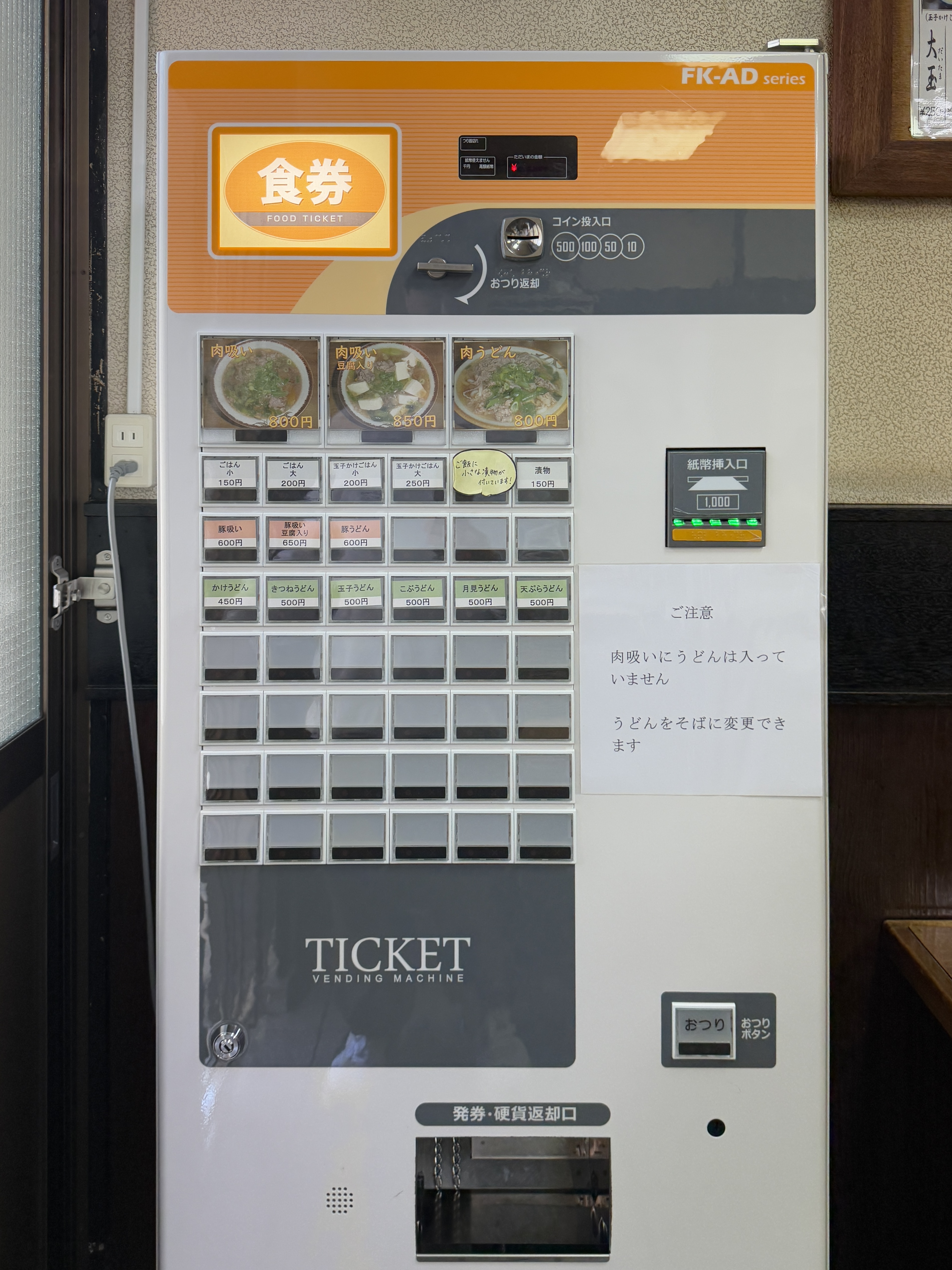 가게에 입장 후에는 식권 자판기에서 식권을 구매해야 합니다.
