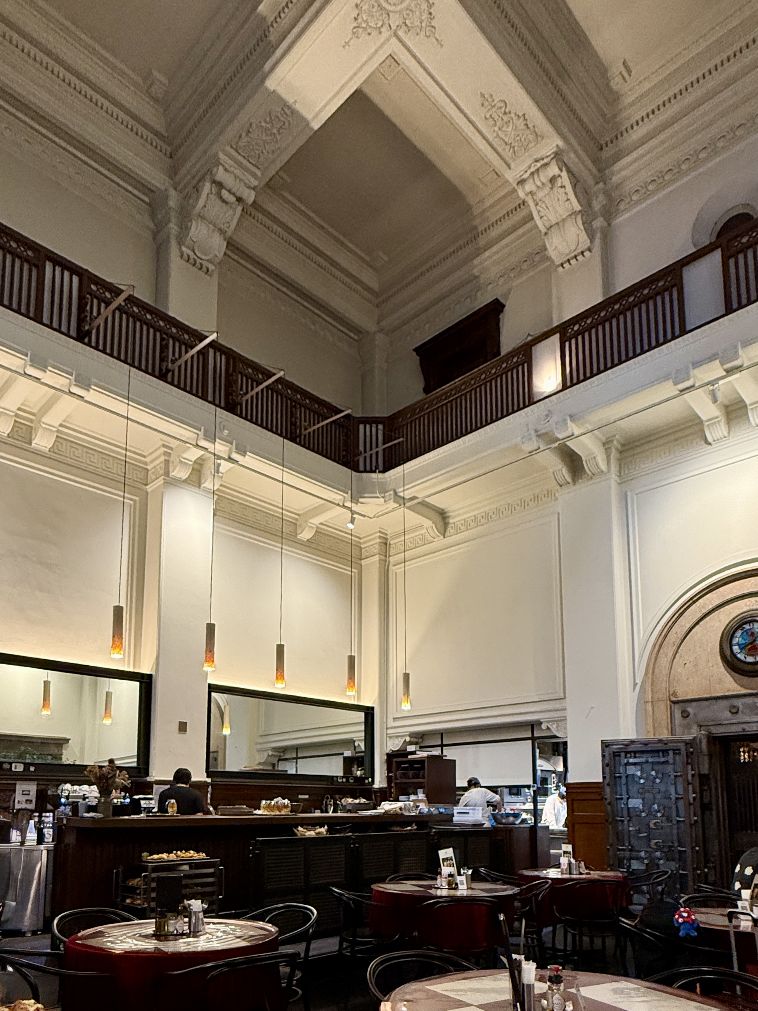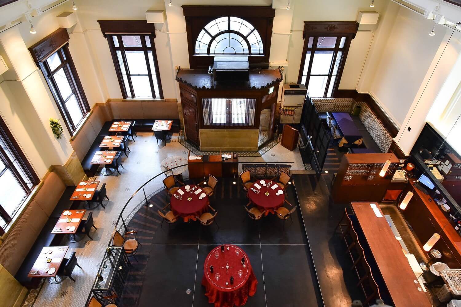 은행으로 사용되던 시절의 구조를 그대로 살린 높은 천장과